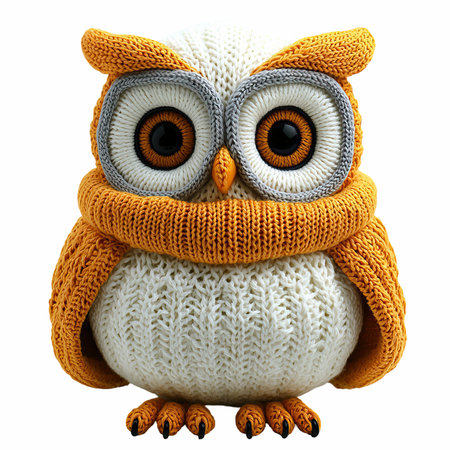 The focused gaze of a marble owl framed by the pages of an open book, surrounded by shelves filled with literature