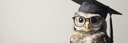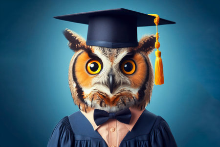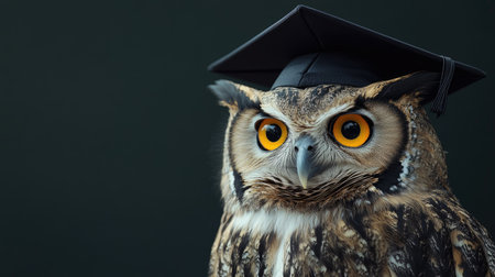 A scholarly owl wearing a graduation cap, perched proudly, signifying academic excellence and wisdom