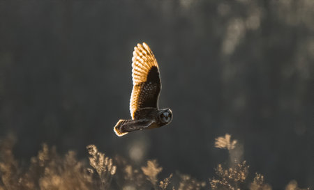 Asio flammeus in flight across the sky for prey, the best photo