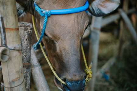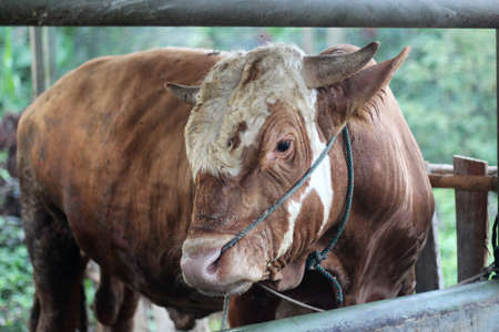 Livestock - Group of cows or cattle are prepared for sacrifices on Eid al-Adha or Eid al-qurban. Bos taurus.