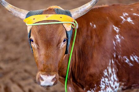 Portrait of a bull in the farm. Shot in India.