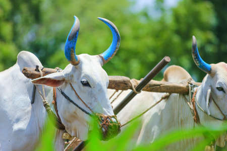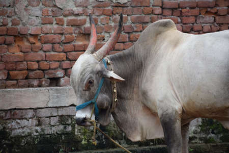 Indian ox on a farm. Indian cattle farm