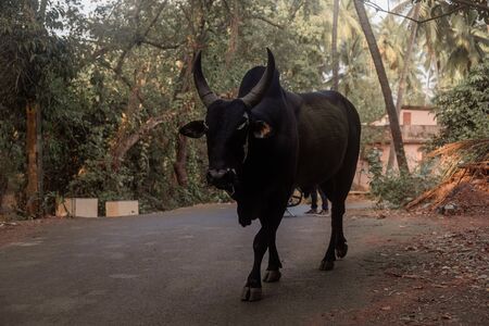 Big black cow on the roads of Goa