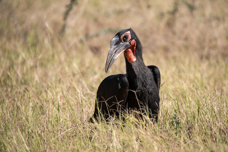 Close up of a Southern ground hornbill in the Kruger National Park, South Africa.