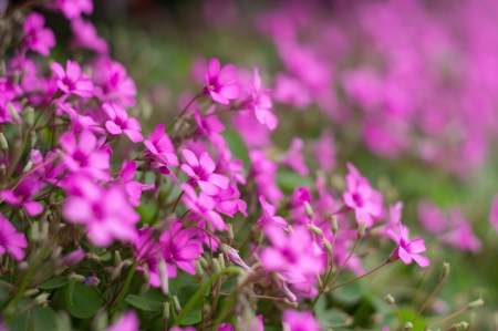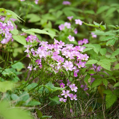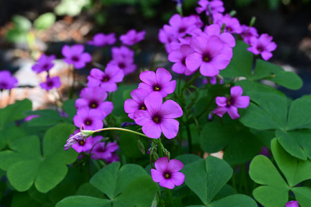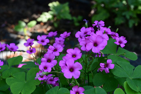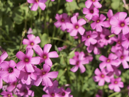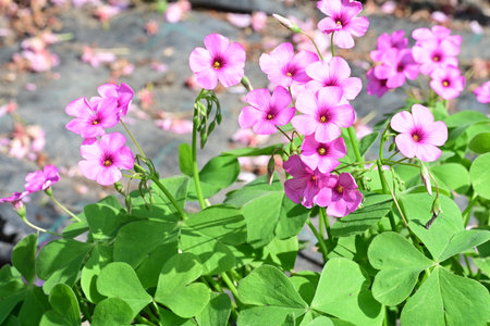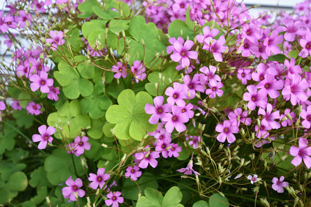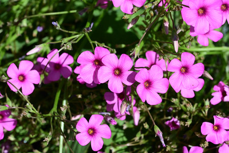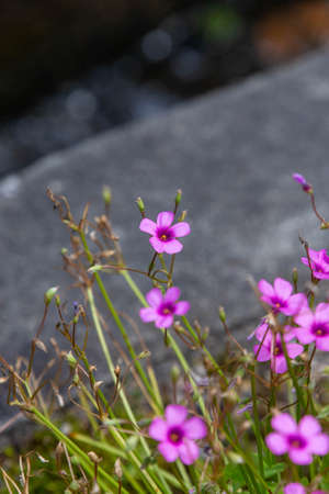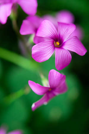 Pink flowers of oxalis (Oxalis purpurea) in the garden