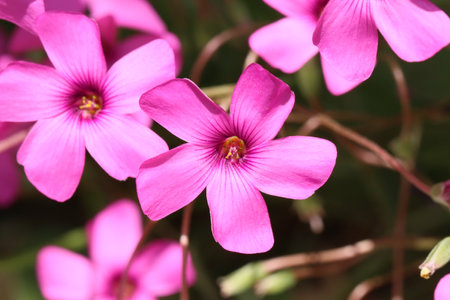flowers Oxalis articulata close up view with natural daylight outdoors