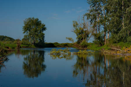 Sunny day on the quiet river in summer in Ukraine