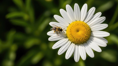 A single daisy with dew drops on its petals, captured in natural light, showcasing the intricate details and freshness of the flower.
