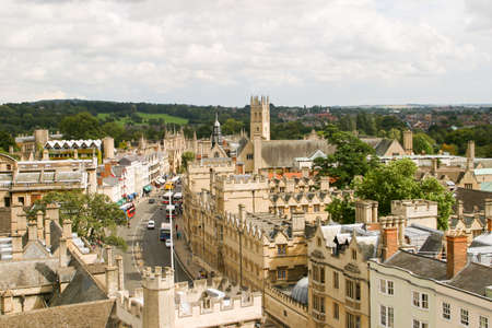 OXFORD, ENGLAND – MAY 15, 2009: The view from the top of Carfax Tower the All Saints Church (Lincoln College's library) on the north side of High Street in central Oxford. Oxford University. England
