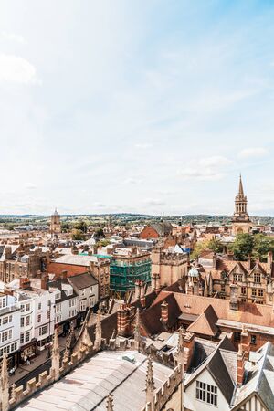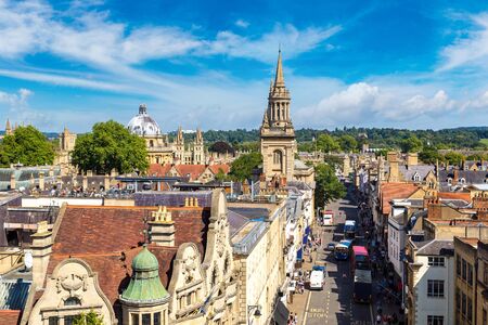 OXFORD,UK-AUG 29 2019 : Cityscape of Oxford with blue sky in United Kingdom