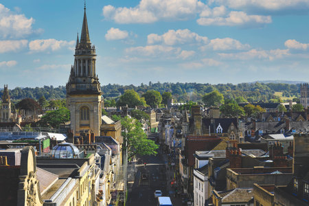 Oxford, United Kingdom - August 21, city panorama on August 21, 2016 in Oxford, United Kingdom. Oxford is known as the home of the University of Oxford.
