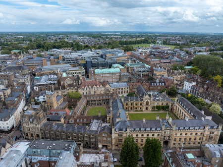 Aerial view of the Christ Church Cathedral and Oxford cityscape from the top of University Church of St Mary the Virgin at United Kingdom