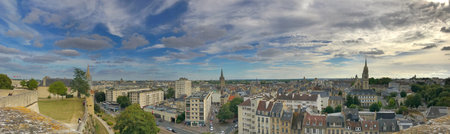A sweeping panorama showcasing a historic city's architecture, skyline, lush greenery, and vibrant sky, ideal for banners or backgrounds.