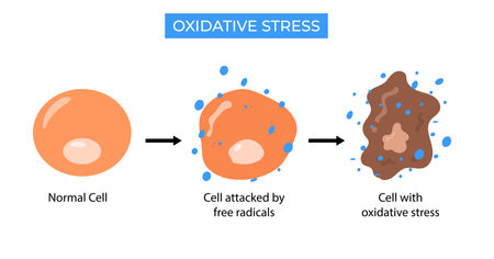 Oxidative Stress Diagram, cell attacked by free radicals illustration