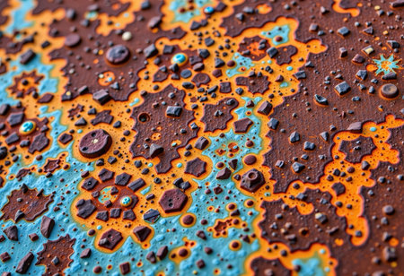 This close-up photo showcases the unique textures and weathered appearance of a vintage, rusted metal surface, A macro study of a rusted metal surface, AI Generated