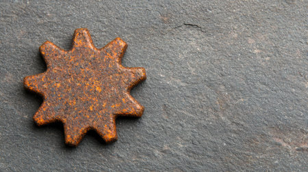 This image features a rustic metal gear shape with weathered rust against a textured slate background, ideal for artistic and design projects.