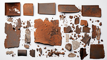 stock images of pieces of rust isolated on a white background, offering a unique and grungy texture template for artistic design projects