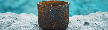 Close-up view of a weathered and rusty pipe fitting, revealing the intricate textures and colors formed over time in a derelict industrial setting, whispering stories of past operations.
