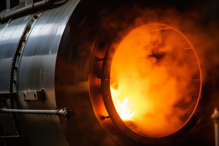 Macro Shot of an Industrial Boiler with Intense Heat and Flames