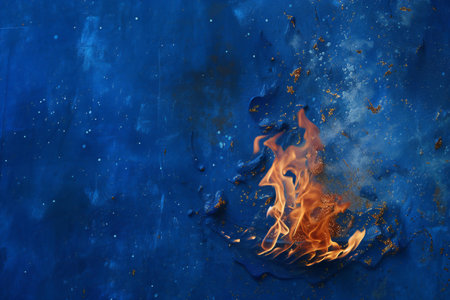 Burning fire on blue background. Fire flames on a blue background.