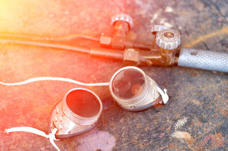 Acetylene bottle Welding gas cylinder pressure gauge close up