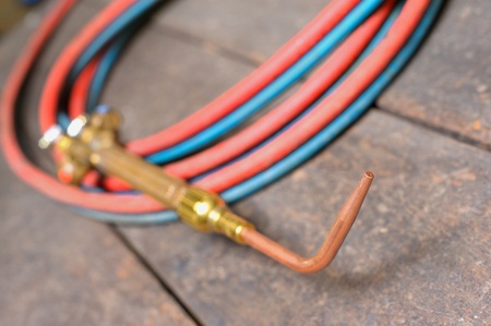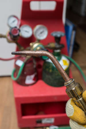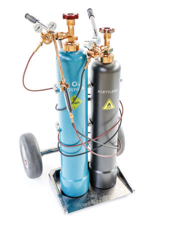 Gas welding equipment. A cylinder with propane and a cylinder with oxygen.