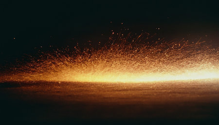 Intense close-up shot of bright sparks erupting from a handheld welding tool, capturing the energy and dynamic motion of industrial craftsmanship in action.