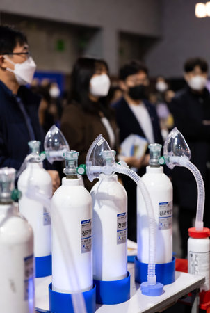 Group of people use oxygen masks to protect themselves from COVID-19.