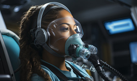 Nurse prepares oxygen mask in a hospital, conceptual image