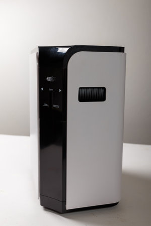 Oxygen concentrator machine on white background. Treatment equipment from hypoxia, coronavirus and other respiratory diseases