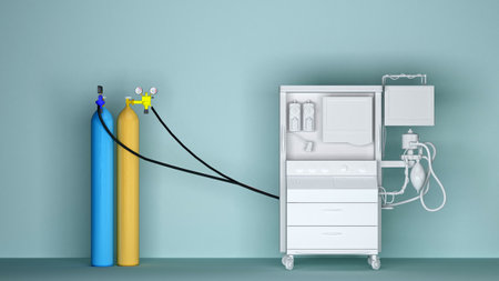 equipment with oxygen cylinder with copy space. 3d rendering