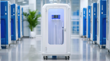 This image showcases a sleek and modern medical chamber designed for sterilization and treatment. Set in a clean room, it represents innovation in healthcare technology.