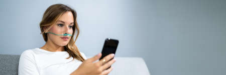 Sick Patient With Nasal Cannula. Ill Woman With Respiratory Disease