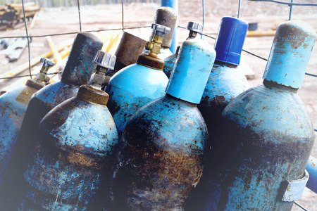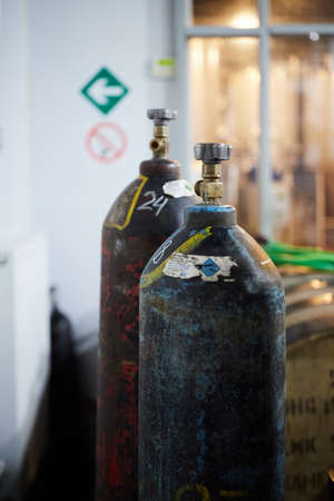 old gas cylinder in a warehouse, closeup of photo with shallow depth of field