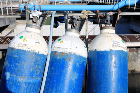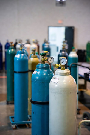 Safety first : The space for many oxygen and argon tanks is arranged in a ventilated and secure location in the welding industry.