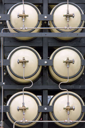 Equipment for the production of handicraft beer. Cylinders with compressed carbon dioxide. Front view.