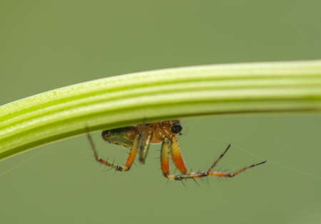 Green spider macro Long legs on a leaf Green scene