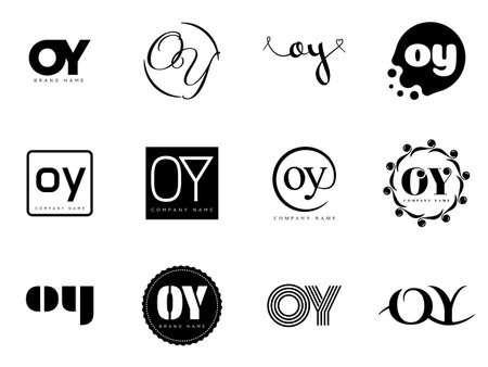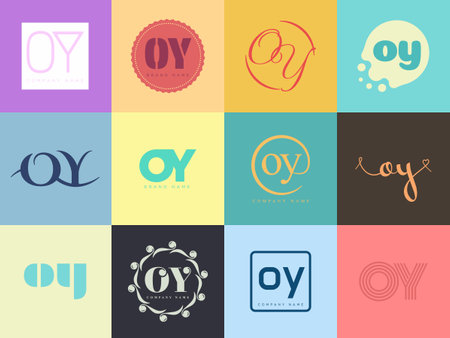 OY logo company template. Letter o and y logotype. Set different classic serif lettering and modern bold text with design elements. Initial font typography. Collection trendy business identity.