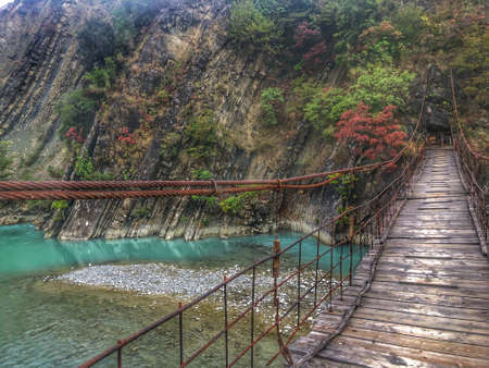 The mountain river in the Okatse Canyon, Georgia. Incredible green color of water