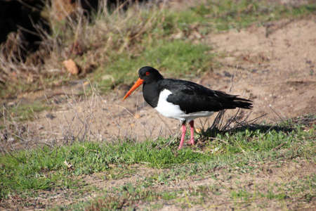 Black and white pied oyster catcher standing on fresh green grass