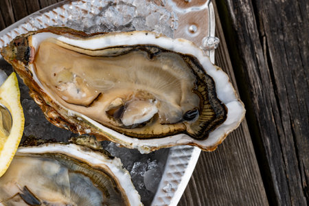 AI Generated. Artfully Arranged Delicious Fresh Oysters on Plate for Upscale Dining or Gastronomy