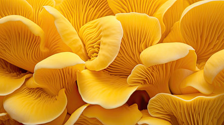 Texture of oyster mushroom close-up on a yellow background.