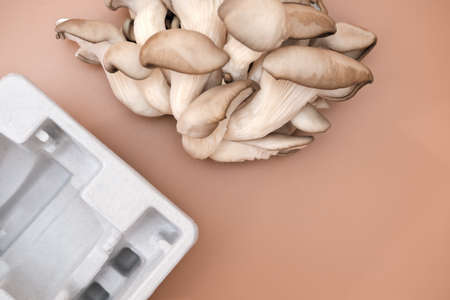 Raw oyster mushrooms on beige background