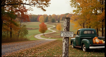 This captivating image features a tranquil railway track disappearing into the distance, flanked by vibrant autumn trees and set beneath a dramatic, cloud-filled sky, evoking a sense of journey and adventure. AI generated image