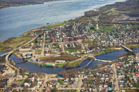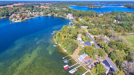 Aerial view Lake Granbury near the historic downtown with dense of lakefront residential and commercial properties. Real estate new development along Brazos River, Texas, USA