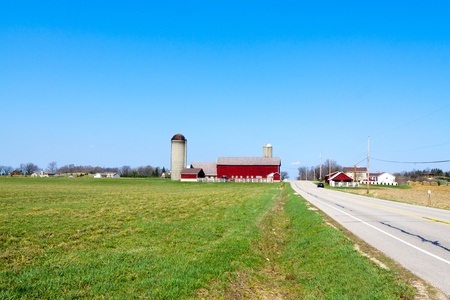 Rural Ontario Farm with Barn Silo storage agriculture animals Canada farming