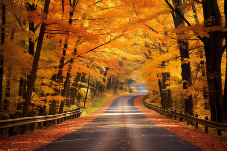Empty road leading through fall foliage at Bear Mountain New York. During Peak Foliage season.