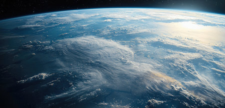 Vast expanse of Earth captured from space, revealing dynamic cloud patterns and deep blue ocean hues illuminated by sunlight.