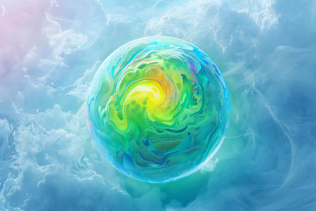 Earth Day Serene Planet Earth Floating in Clouds, Climate Change and Environmental Concept