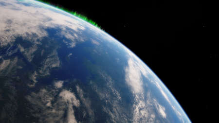 View of blue planet Earth close up with atmosphere during a sunrise 3D rendering elements of this image furnished by NASA